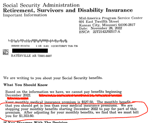 Why you may get a letter from the social security administration that tells you your social security benefit has been eliminated. Like this: